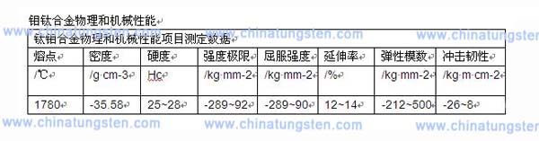 钼钛合金物理和机械性能